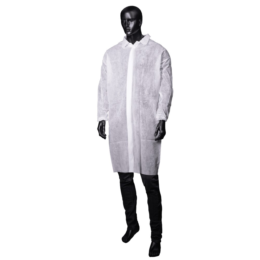 Der leichte Besuchermantel aus Polypropylen bietet zuverlässigen Schutz für Besucher in hygienekritischen Bereichen. Das einweg Produkt verfügt über einen Kragen, Druckknöpfe als Verschluss und Gummibündchen an den Ärmeln, wodurch es einfach anzulegen ist und Kontaminationen reduziert. Das robuste Material ist beständig gegen verschiedene Lebensmittelarten und sorgt für sichere Handhabung in Industrie, Lebensmittelverarbeitung, medizinischen Einrichtungen und körpernahen Dienstleistungen. Unsteril und unkompliziert in der Entsorgung: die praktische Hygienekleidung für kontrollierte Umgebungen.