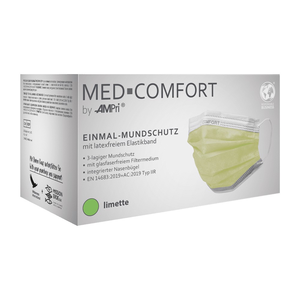 Die medizinische OP-Maske Typ IIR von Med-Comfort bietet zuverlässigen Basisschutz in Klinik, Praxis und in hygienischen Arbeitsbereichen. Die dreilagige Konstruktion aus hochwertigem Polypropylen ist leicht, atmungsaktiv und sorgt für komfortablen Sitz bei längerer Tragedauer. Als Typ IIR ist die Maske spritzwassergeschützt und reduziert die Übertragung von Tröpfchen effektiv.